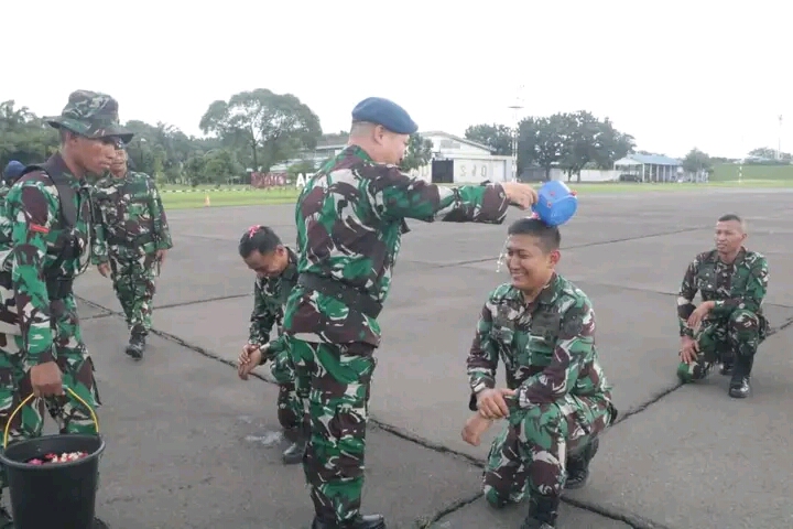 Sebagai penutup acara, dilakukan tradisi penyiraman air bunga kepada personel yang naik pangkat sebagai simbol ucapan selamat dan harapan agar terus meningkatkan kinerja dan pengabdian bagi TNI AU khususnya Lanud Soewondo.