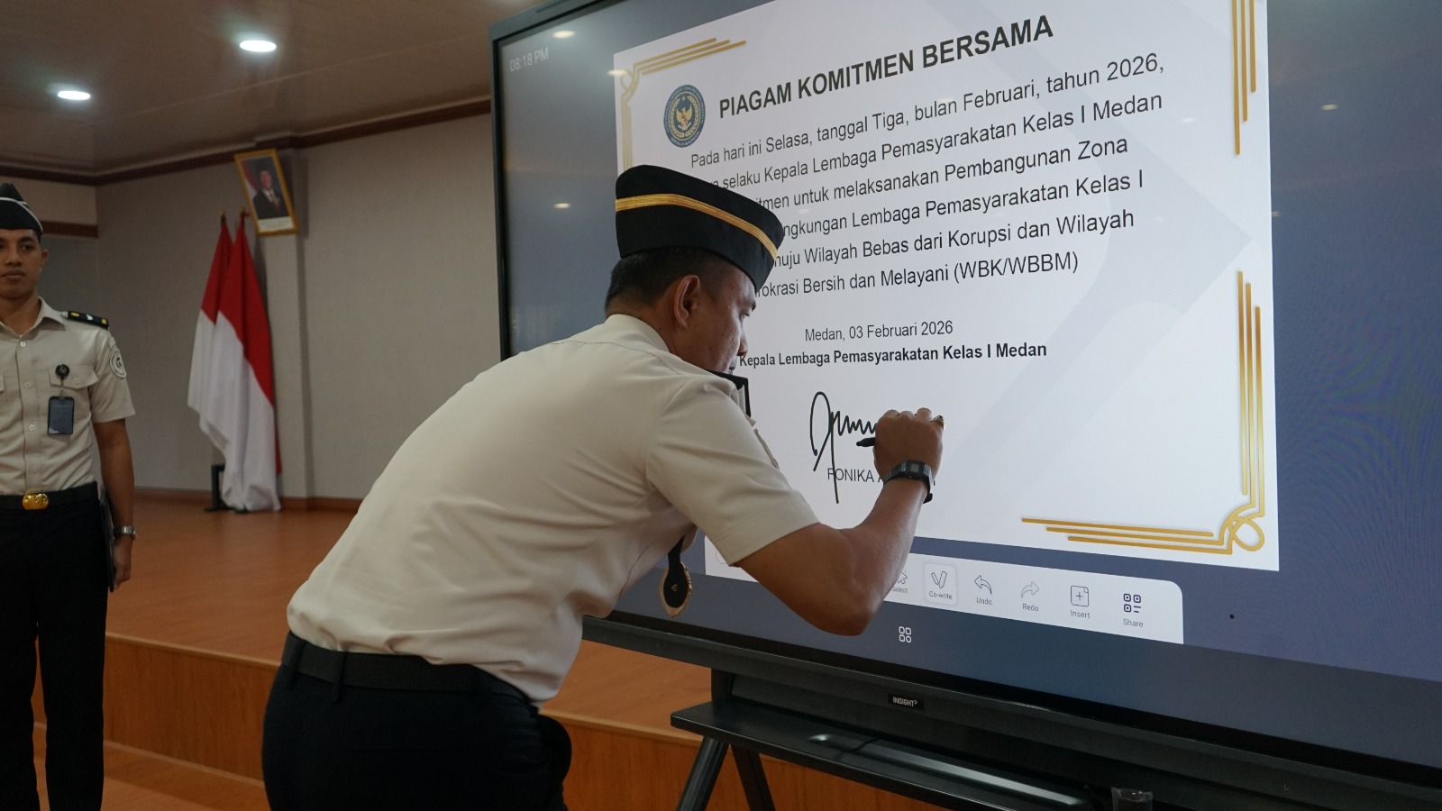 Medan – Lembaga Pemasyarakatan Kelas I Medan menggelar apel pagi yang dirangkaikan dengan pencanangan serta penandatanganan Komitmen Bersama dan Pakta Integritas untuk Pembangunan Zona Integritas menuju Wilayah Bebas dari Korupsi (WBK) dan Wilayah Birokrasi Bersih dan Melayani (WBBM) Tahun 2026. Kegiatan dilaksanakan pada Selasa, 3 Februari 2026, pukul 08.00 WIB di Aula Gedung II Lt.2 Lapas Kelas I Medan.