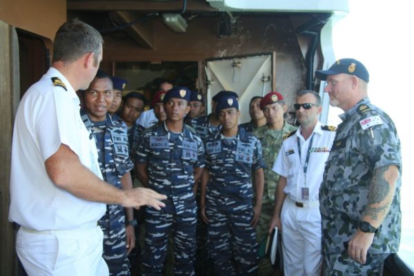 Sedangkan, Letkol Laut (P) Ferry Hutagaol mewakili TNI AL menyampaikan, ucapan terima kasih atas penyambutan yang baik dan ramah oleh Angkatan Laut Australia, semoga kedepan dapat dilanjutkan latihan untuk membangun kesepahaman prosedur menindak pelanggaran dan keamanan laut menjadi lebih baik lagi secara bersinergi dan berkesinambungan untuk meningkatkan standar latihan antara TNI Angkatan Laut dan Angkatan Laut Australia (RAN).
