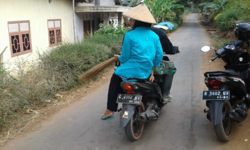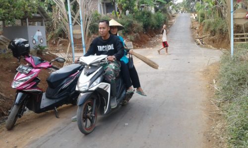 Batang – Jauhnya ladang dari pemukiman warga di Desa Durenombo, Kecamatan Subah Kabupaten Batang, mengharuskan para petani berjalan setidaknya 30 menit untuk sampai ke areal pertanian. Ditambah lagi, jalan penghubung tengah diperbaiki dalam program TMMD Reguler ke-103, walaupun sebentar lagi jalan bisa digunakan. Namun para petani tetap harus berjalan menuju ladang mereka. Melihat kondisi tersebut, anggota Kodim 0736 Batang, Praka Muhammad Rizky setiap pagi menawarkan ojek gratis untuk para petani sebelum melaksanakan tugasnya.