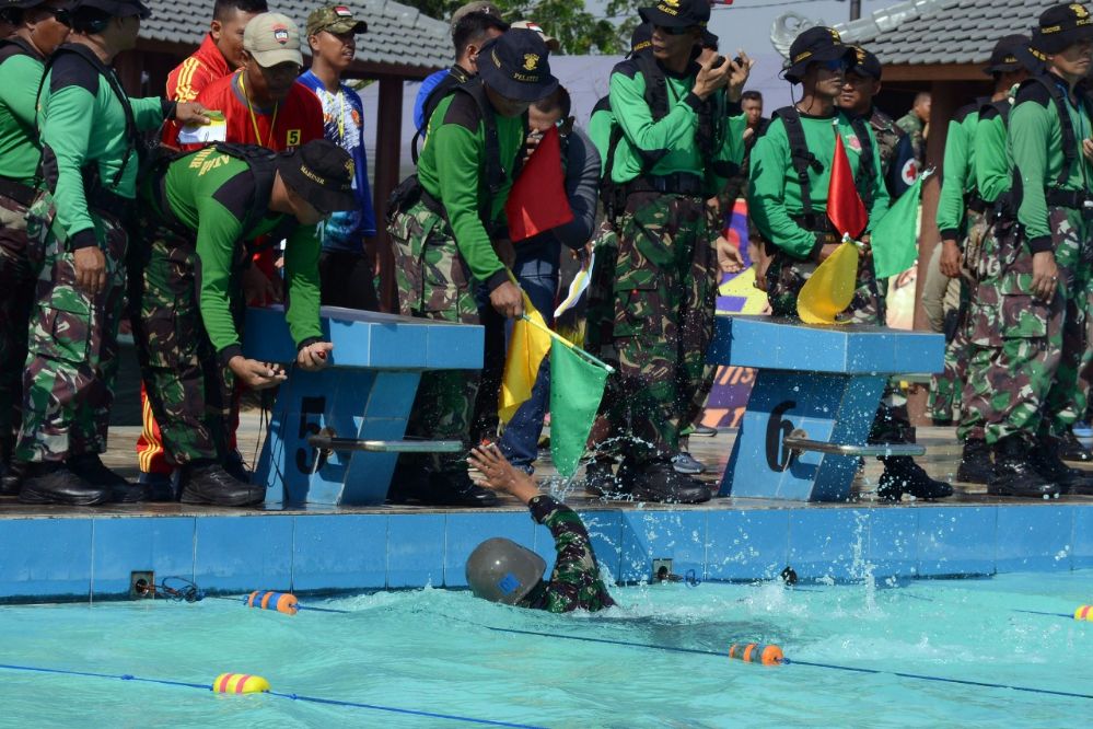 Lomba renang militer tingkat Komandan Batalyon tersebut diikuti 34 Danyon dengan menempuh jarak 50 meter dibagi menjadi 5 gelombang. Masing – masing peserta melaksanakan renang dengan perlengkapan pakaian PDL, senjata dan helm.