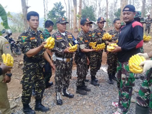Terlihat satgas TMMD bersama sejumlah ormas yang ikut bekerja,secara bersama-sama menikmati logistik alam yang diberikan oleh warga setempat berupa pisang,dan tidak tanggung-tanggung, pisang yang diberikan pun jumlahnya sangat banyak,sehingga cukup untuk sebagai pengganti makan siang. “Mantap pak..walaupun ini hanya pisang namun bisa sebagai pengganti makan siang kita yang kerja disini,karena jumlahnya banyak sekali dan cukup untuk semua yang kerja disini ” ungkap sertu Joko yang ada di lokasi tersebut bersama warga.(kodim batang|red|noven)