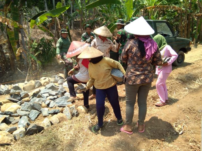 Mereka dengan sukarela dan penuh semangat ikut membantu memindahkan bongkahan bongkahan batu belah untuk pengerasan jalan (makadam) dalam pembangunan fisik pra TMMD reguler ke103 Kodim Batang tahun 2018.