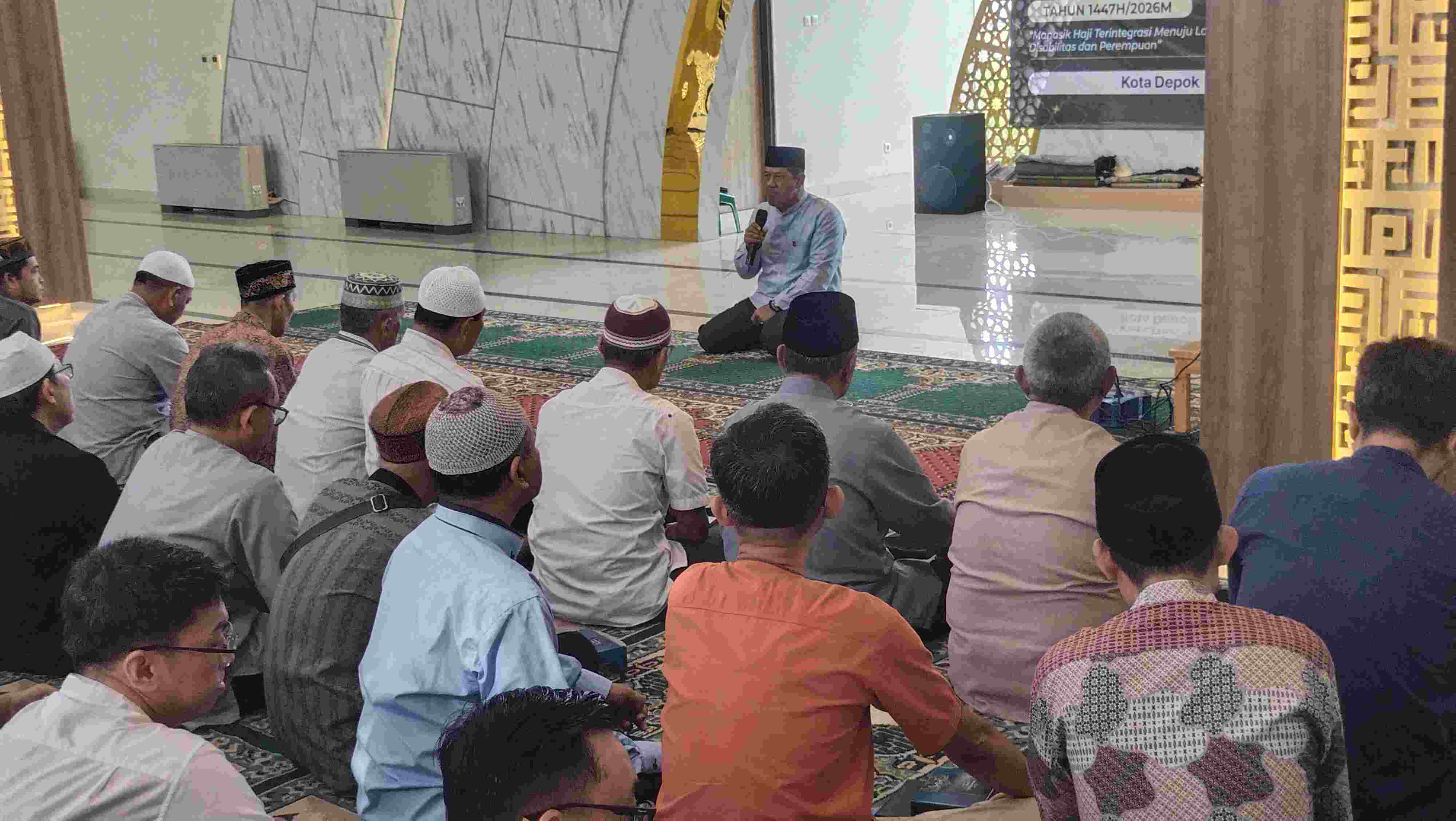 Depok – Kementerian Haji dan Umrah Kota Depok melaksanakan kegiatan Bimbingan Manasik Haji Nasional bagi calon jamaah haji Kecamatan Tapos. Kegiatan ini berlangsung di Masjid Jami Dhuyufur Rahman, Kecamatan Tapos, Kota Depok, pada Minggu (15/2/2026).