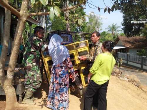 Batang – Peningkatan ekonomi kini juga dialami Kirno (63) warga Desa Pretek Rt. 5 Rw. 4 Kecamatan Pecalungan, sejak dirinya berjualan sayur keliling memasuki Desa Durenombo Kecamatan Subah, lokasi TMMD Reguler 103 Kodim 0736 Batang. Jumat (19/10/18).