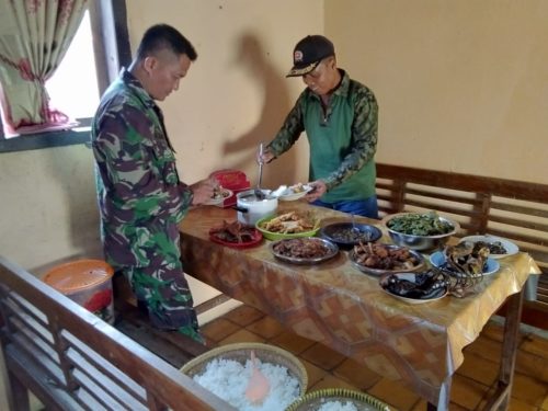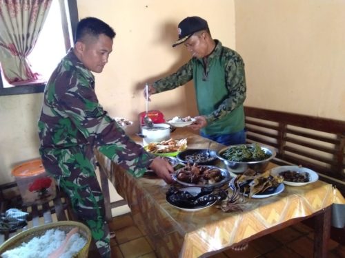 Batang – Dalam program TMMD Komunikasi Sosial (Komsos) Bisa jadi alternatif merebut hati rakyat,dan melalui komsos, anggota Satgas TMMD Reguler 103 Kodim 0736/Batang termasuk Kepala Staf Kodim Batang Mayor Inf Raji mendapatkan rezeki yaitu dengan bisa makan siang bersama di rumah Kadus Durenombo Fahrudin yang beralamatkan Rt 3/ Rw 2. Sabtu (20/10/18).