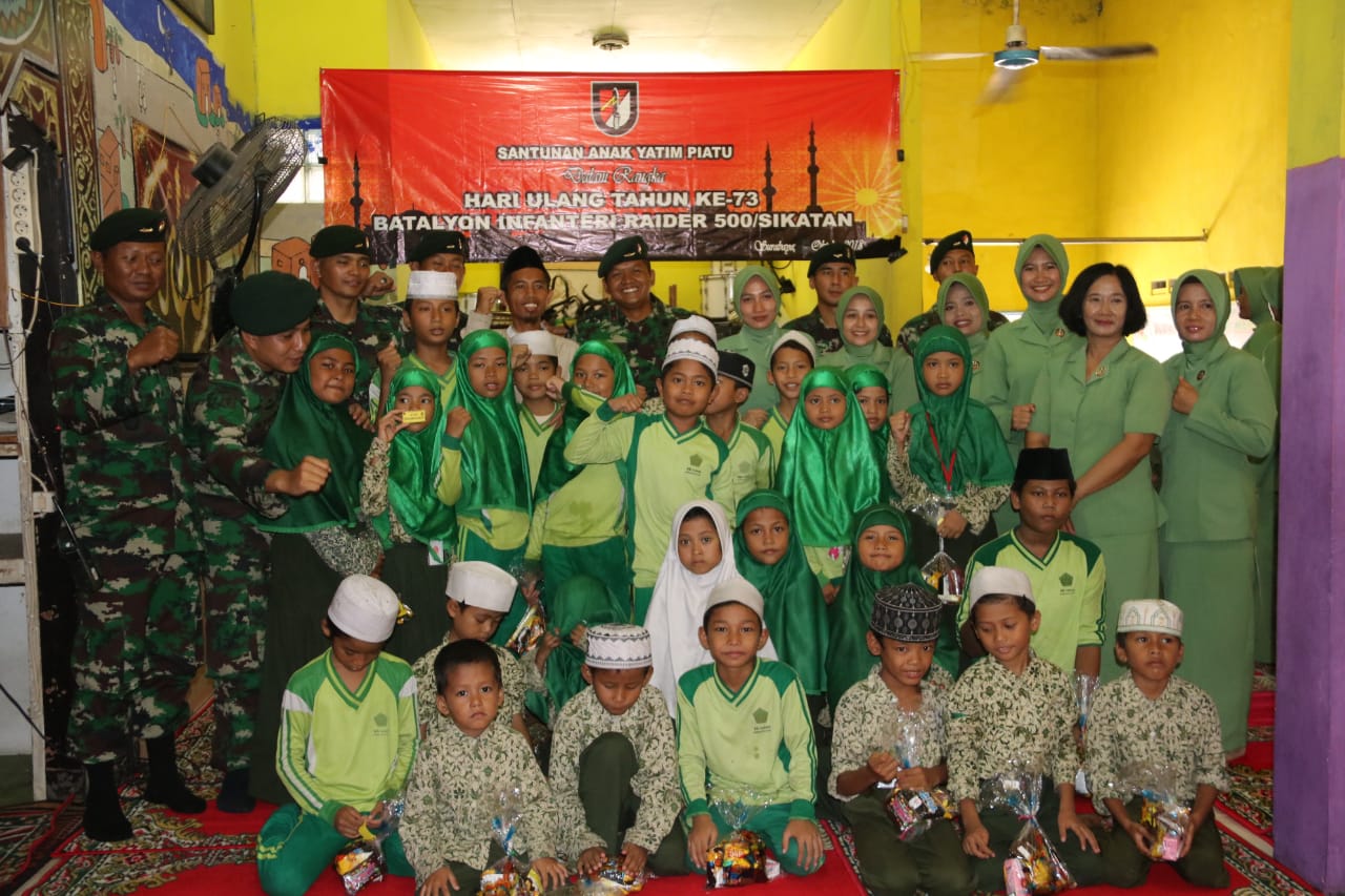 Komandan Batalyon Infantri (Danyonif) Raider 500/Sikatan, Letkol Inf Sidik Wiyono menuturkan, komunikasi sosial (komsos) ke panti asuhan Bilyatimi tersebut dilakukan, bertujuan untuk mengungkapkan rasa syukur atas bertambahnya usia Yonif Raider 500/Sikatan.