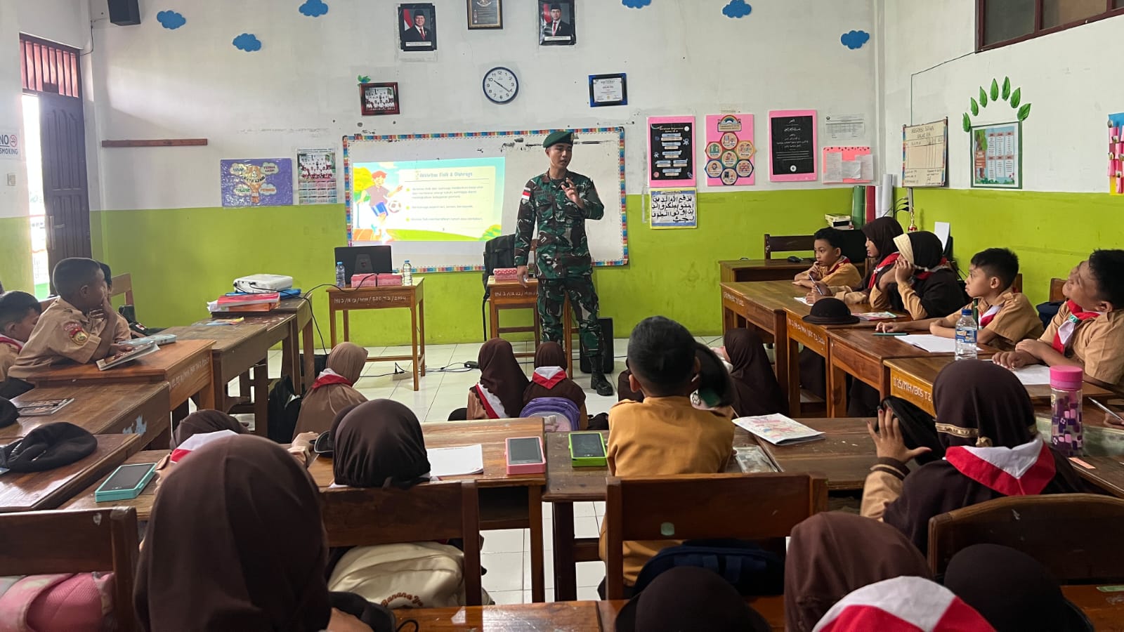 Belu — Satgas Pamtas RI–RDTL Sektor Timur Yonarmed 12 Kostrad melaksanakan kegiatan pengajaran dan pendidikan dengan tema Pola Hidup Bersih dan Sehat (PHBS) kepada para siswa di MI Hidayatullah, Berdao, Kec. Atambua Barat, Kabupaten Belu, Nusa Tenggara Timur. Kegiatan ini merupakan bagian dari pembinaan teritorial Satgas dalam rangka menanamkan kesadaran pentingnya menjaga kesehatan sejak usia dini. Sabtu (24/01/2026).