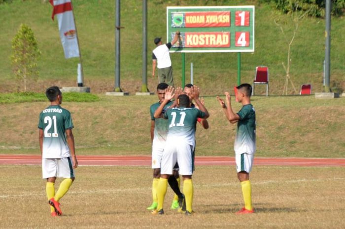 Hasil ini menyusul kemenangan 4-1 Tim Sepakbola Kostrad atas Tim Sepakbola Kodam XVIII/Kasuari pada laga pamungkas penyisihan Grup A di Stadion Sapta Marga, Akmil, Magelang, Rabu (25/7/2018).