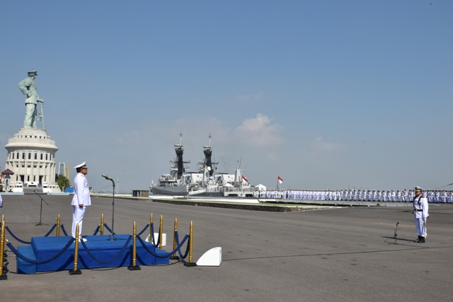 PB | Surabaya – Pancasila sebagai ideologi bangsa memiliki makna yang sangat penting bagi sejarah perjalanan Bangsa Indonesia. Karena itulah Pancasila dijadikan sebagai dasar negara ini. Artinya segala tindak tanduk dari orang-orang yang termaktub sebagai warga negara dari Republik Indonesia, haruslah didasarkan pada nilai-nilai dan semangat Pancasila. Hal tersebut tersirat dalam upacara peringatan Hari Kesaktian Pancasila yang dipimpin Kepala Staf Komando Armada RI Kawasan Timur (Kasarmatim) Laksamana Pertama TNI I.N.G. Ariawan, S.E., M.M. di Dermaga Koarmatim Ujung Surabaya.Sabtu (01/10/2016).