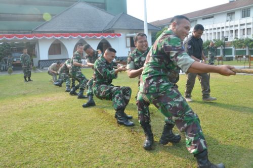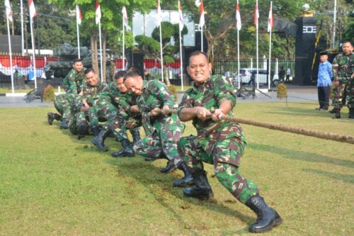 Jakarta – Usai melaksanakan upacara bendera dalam rangka memperingati HUT ke-73 Kemerdekaan RI, prajurit dan PNS Markas Kostrad menggelar berbagai kegiatan lomba-lomba. Berbagai jenis lomba yang digelar seperti lomba tari Poco-Poco, lomba Tarik Tambang, lomba Panco dan Bongkar Pasang Senjata dengan peserta para prajurit dan PNS di lingkungan Markas Kostrad, Gambir, Jakarta Pusat, Jum’at (17/8/2018).