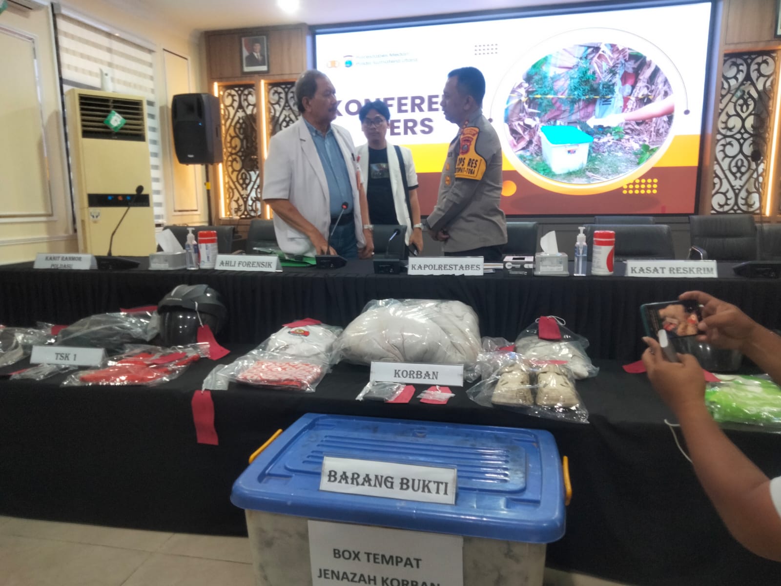 “Dari penemuan itu, kita ketahui bahwa jasad korban di dalam box ditutupi selimut dan bertuliskan penginapan OYO, dan kita telusuri keberadaan OYO yang tidak jauh dari lokasi ternyata benar,” ungkap Kapolrestabes.