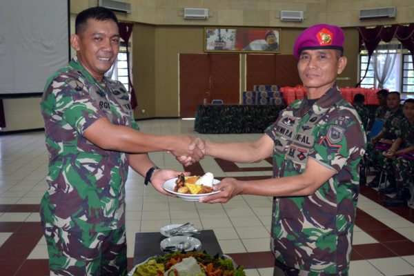 Usai upacara kenaikan pangkat, dilanjutkan dengan acara ramah tamah yang didahului dengan pemotongan tumpeng oleh Komandan Batalyon Infanteri-1 Marinir, kemudian potongan tumpeng diberikan kepada perwakilan prajurit yang naik pangkat Serma Mar I Dewa Putu Adriayana.(Dispenkormar|red)