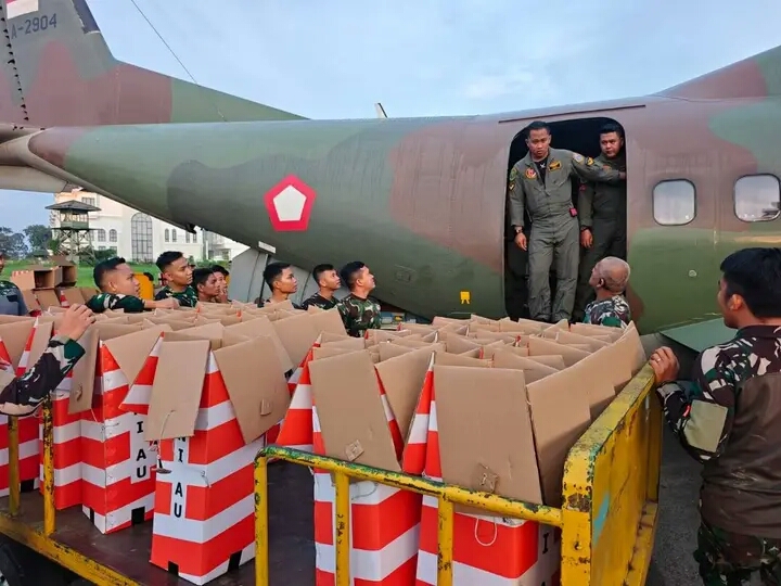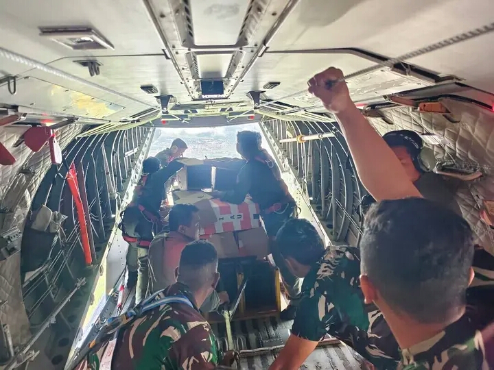 Selain itu, satu pesawat C-130J Super Hercules dengan registrasi A-1340 turut dikerahkan guna meningkatkan kapasitas pengiriman logistik. Pesawat ini melaksanakan penerjunan 36 bundles Payung Low Cost Low Altitude (LCLA) dengan total muatan mencapai 5.500 kilogram. Metode LCLA dipilih untuk memastikan bantuan dapat dijatuhkan dengan presisi dan cepat diterima oleh warga.