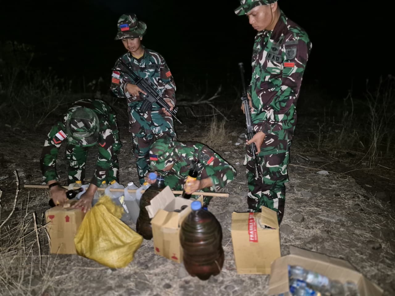 Dalam sebuah operasi penyergapan (ambush) yang dilakukan personel satgas Pos Wini pada Selasa malam (04/10) di jalur tidak resmi wilayah perbatasan. Personel satgas berhasil menyita sejumlah besar barang bukti ilegal yang diduga hendak diselundupkan ke wilayah Timor Leste.