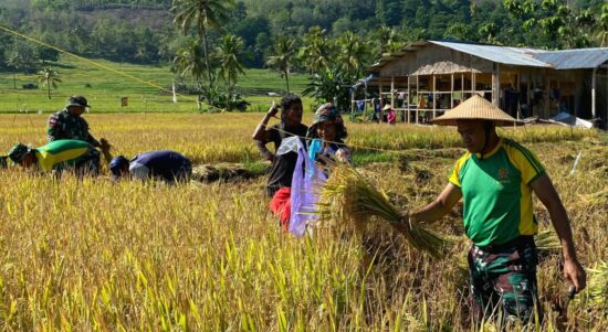 Pos Maubusa Bantu Warga Panen Padi di Perbatasan