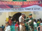 PB | TTU – Satgas Pamtas RI-RDTL, Batalyon Infanteri Raider 321/Galuh Taruna (GT) Kostrad menggelar pengobatan massal dan pasar murah di Pos