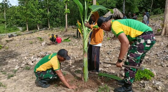 Yonarmed 12 Kostrad Pos Motamasin Dorong Ketahanan Pangan Lewat Penanaman Pisang