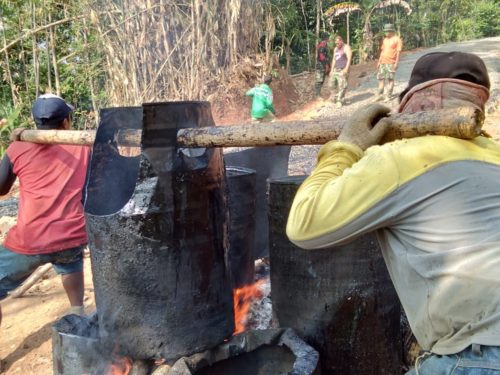 Dia adalah Suparno (43) dan Darji (38) yang dengan semangat memikul aspal yang baru saja di goreng untuk dicairkan dan kemudian dicurahkan untuk pengaspalan.” Panasnya aspal ini juga panasnya semangat saya pak,”ungkapnya sambil jalan memikul aspal.