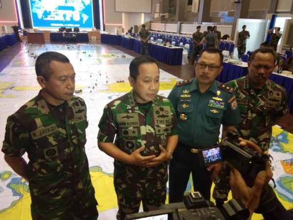 PB|Surabaya – Menjelang event besar yang digelar oleh TNI Angkatan Laut 3rd Multilateral Naval Exercise Komodo (MNEK) Tahun 2018 di Lombok Nusa Tenggara Barat, Asisten Operasi (Asops) Kasal Laksamana Muda TNI Aan Kurnia, S.Sos., didampingi Panglima Komando Armada RI Kawasan Timur (Pangarmatim) Laksamana Muda TNI Didik Setiyono, S.E., M.M. meninjau pelaksanaan Tactical Floor Game (TFG) MNEK 2018, bertempat di Panti Tjahaja Armatim (PTA), Ujung Surabaya. Rabu, (11/04/2018).