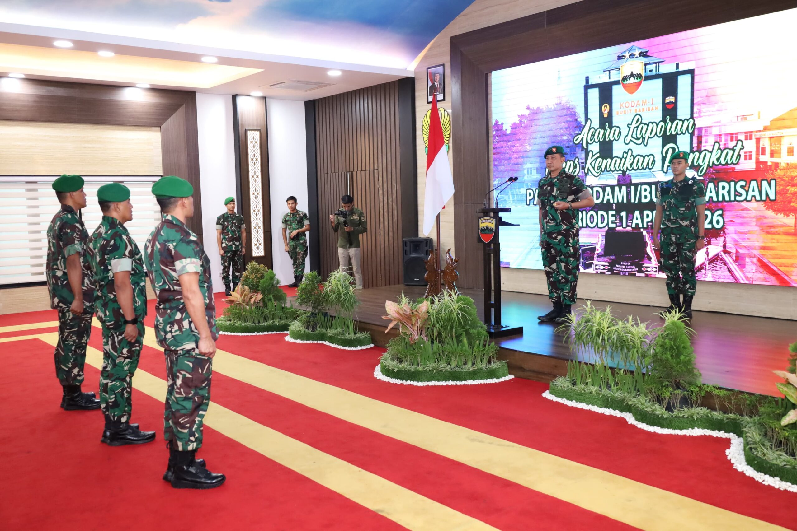 Medan – Pangdam I/Bukit Barisan Mayjen TNI Hendy Antariksa memimpin Laporan Korps Kenaikan Pangkat Perwira Menengah (Pamen) Kodam I/BB periode 1 April 2026 di Gedung A.H. Nasution Lt. II Makodam I/BB, Rabu (1/4/2026).