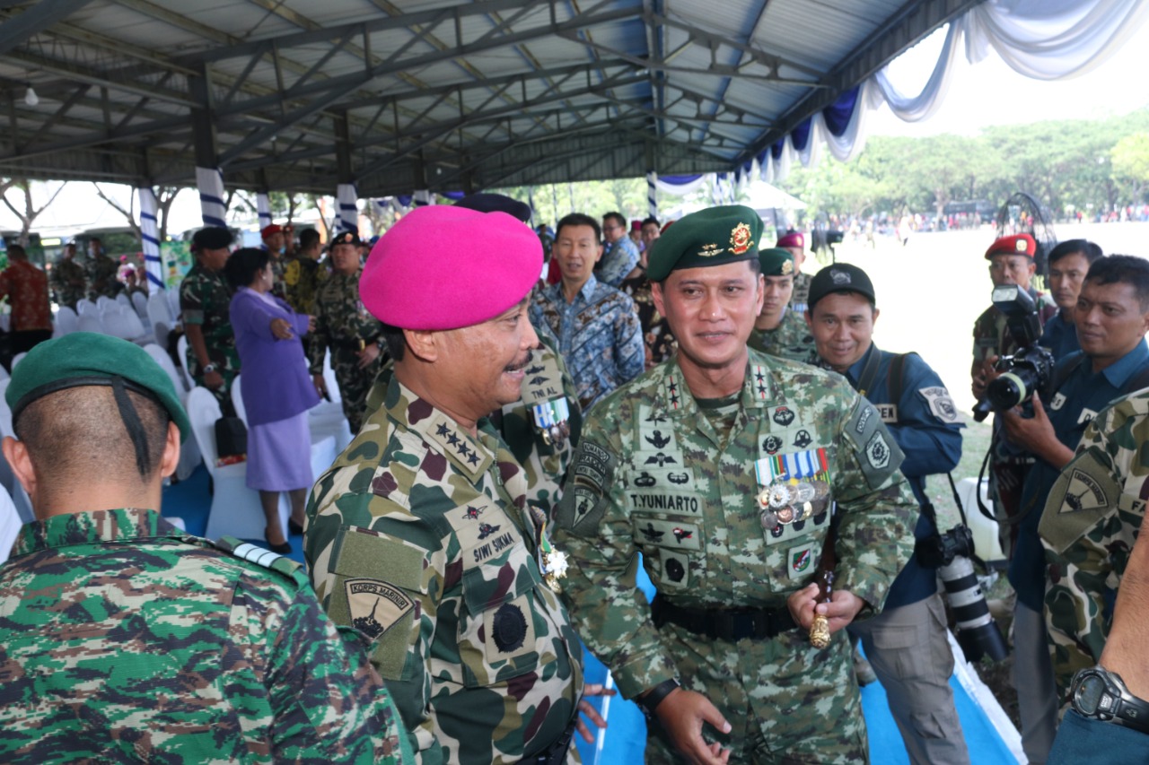 Surabaya – Panglima Divisi Infanteri 2 Kostrad Mayjen TNI Tri Yuniarto, S.A.P, M.Si, M.Tr (Han) menghadiri upacara peringatan HUT Ke-74 Korps Marinir di Lapangan Apel Kesatrian Marinir Sutedi Senaputra Bhumi Marinir Karangpilang, Surabaya. Jum’at (15/11).Upacara peringatan HUT Ke-74 Korps Marinir ini dipimpin oleh Kepala Staf Angkatan Laut (Kasal) Laksamana TNI Siwi Sukma Adji S.E., M.M., dengan tema “Profesionalitas, Loyalitas, dan Pengabdian Prajurit Petarung Korps Marinir Untuk NKRI”.