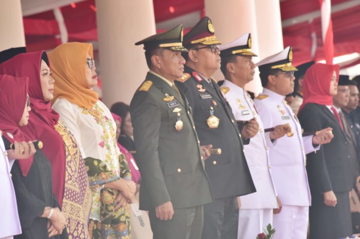 Surabaya – Panglima Komando Armada (Pangkoarmada) II Laksamana Muda TNI Heru Kusmanto, S.E., M.M., didampingi Ketua Daerah Jalasenastri Armada II Ny. Yayuk Heru Kusmanto menghadiri Upacara Peringatan Hari Sumpah Pemuda 2019 yang digelar Pemerintah Propinsi Jawa Timur, bertempat di Gedung Grahadi Surabaya Senin (28/10).