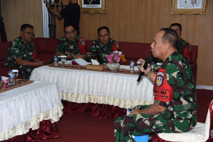 Surabaya – Panglima Komando Armada II Laksda TNI Mintoro Yulianto, S.Sos, M.Si selaku Pangkogasgabfib memberikan briefing atau pengarahan akhir kepada para Perwira Kogasgabfib menjelang pelaksanaan puncak latihan Armada Jaya XXXVII tahun 2019 yang tinggal dalam hitungan jam tersebut.