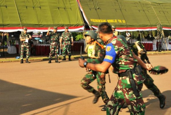 Panglima Kostrad, Letjen TNI Agus Kriswanto didampingi oleh Panglima Divisi Infanteri 1 Kostrad dan para Asisten Kasdivif 1 Kostrad turut menyaksikan dan memberikan semangat kepada para prajurit Kontingen Kostrad.