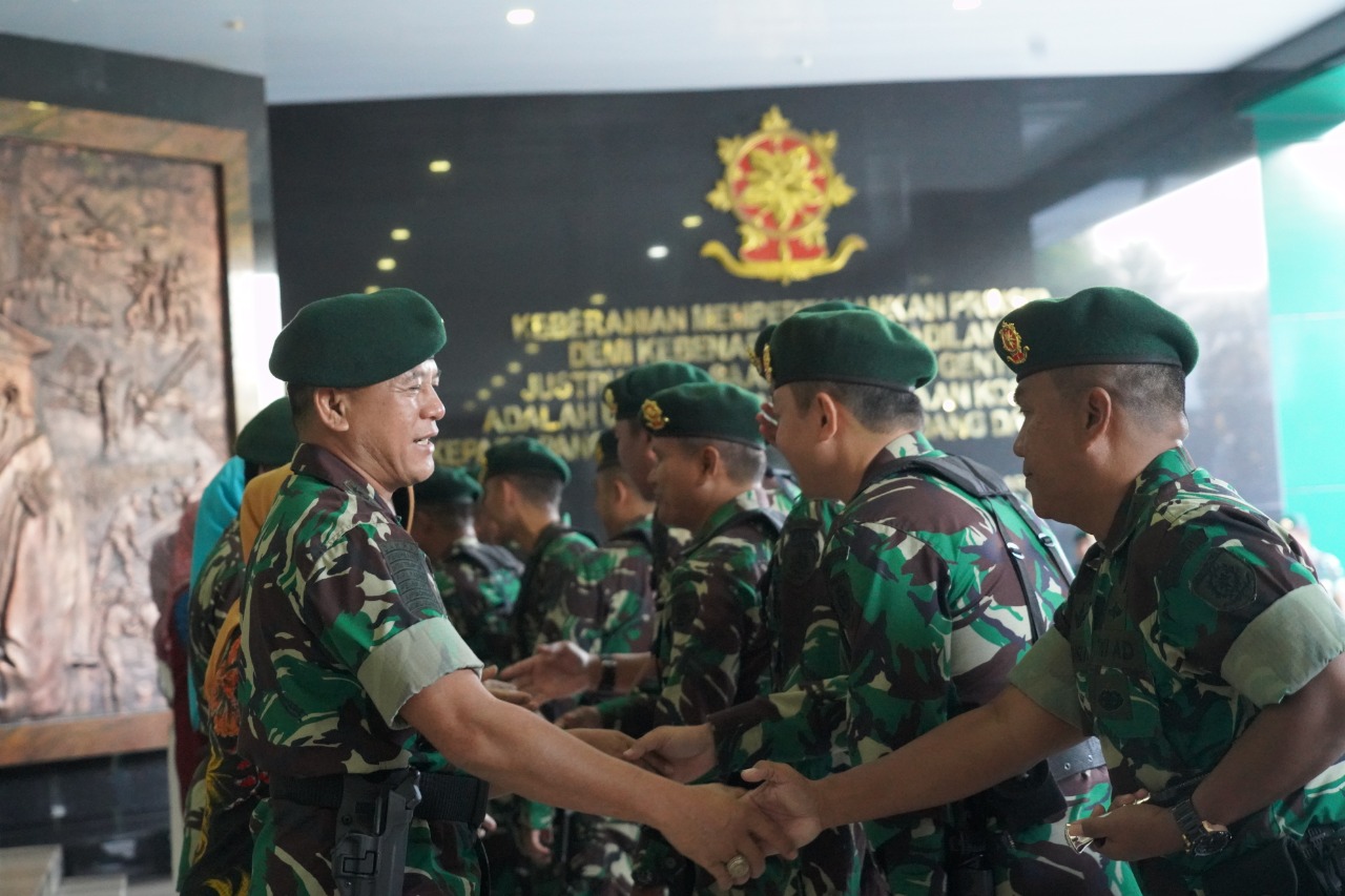 Jakarta – Panglima Komando Cadangan Strategis Angkatan Darat (Pangkostrad) Letnan Jenderal TNI Besar Harto Karyawan, S.H., M.Tr (Han), didampingi Ibu Tari Besar Harto Karyawan melaksanakan halal bihalal bertempat di depan Serambi Kehormatan Markas Kostrad, Gambir, Jakarta Pusat, Senin (10/6/19).