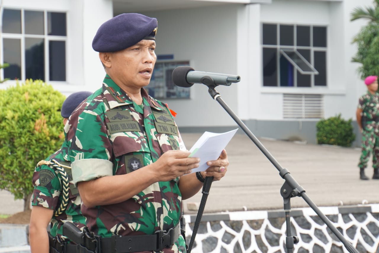 PADANG – Kamis (18 / 04 / 19) Komandan Lantamal II Padang Laksamana Pertama TNI Agus Sulaeman. M.Sc. bertindak sebagai Inspektur Upacara pada upacara penaikan bendera di Markas Komando Lantamal II Padang jalan Bukit Peti Peti Teluk Bayur Padang pada pukul 08.00Wib. Upacara yang di hadiri oleh Wadanlantamal II Kolonel Marinir Wurjanto. M.Han, Asisten, Dansatrol, Kasatker, Danyonmarhanlan II, terdiri dari Pleton Pamen, Korsik Lantamal, Pleton Pama, Pleton Pomal, Pleton Bintara, Pleton Tamtama, Pleton Yonmarhanlan dan Pleton ASN Lantamal II, dengan Komandan Upacara Mayor Laut (KH) Boby Yudistira yang sehari hari berdinas di Staf Intel Lantamal II.