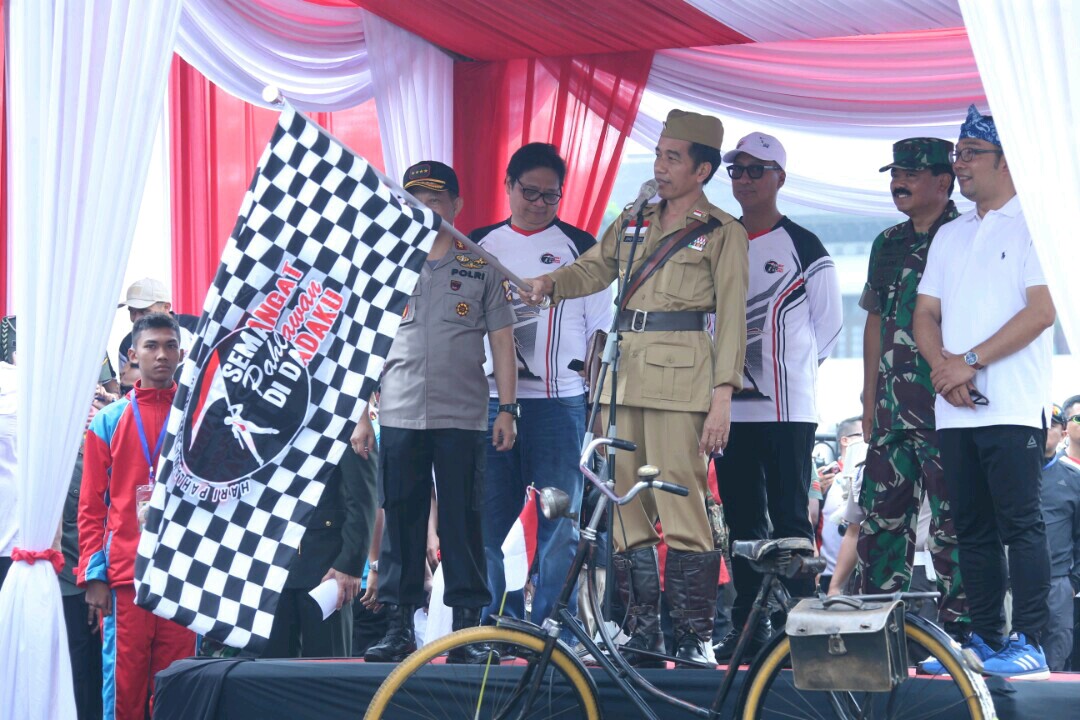 Sebelumnya, Presiden RI Joko Widodo melepas ribuan peserta “Gowes Bandung Lautan Sepeda” dalam rangka memperingati Hari Pahlawan 10 November 2018 yang diadakan oleh Kodam III/Siliwangi, dengan mengibarkan bendera star di depan Gedung Sate, Jl. Diponegoro No. 22, Kota Bandung, Jawa Barat.
