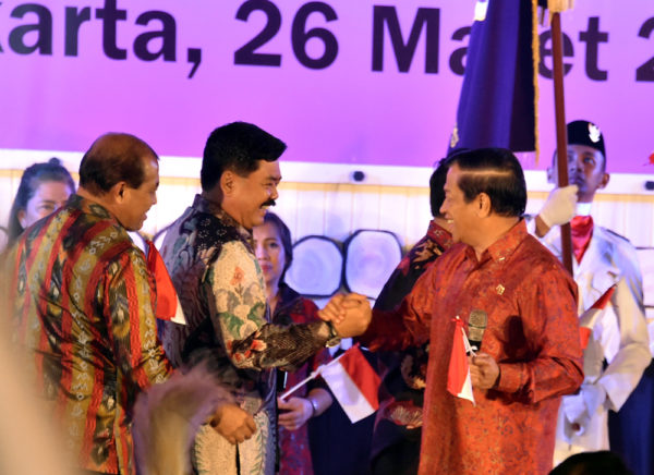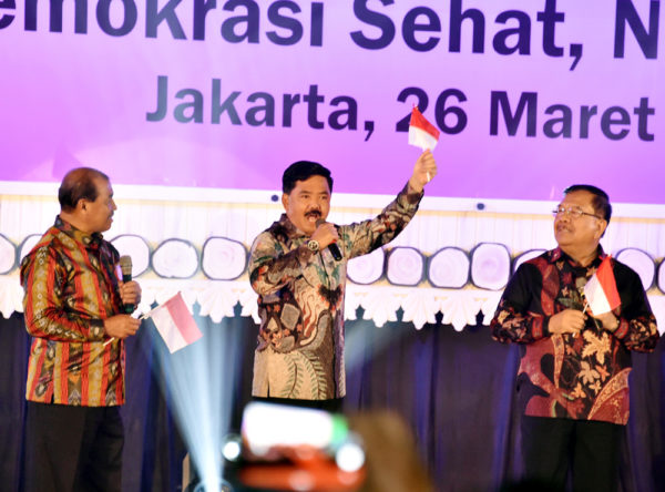 PB|Jakarta – Panglima TNI Marsekal TNI Hadi Tjahjanto, S.I.P. hadir mendampingi Wakil Presiden RI M. Jusuf Kalla pada acara Reuni Akbar HUT Ke-40 Ikatan Keluarga Alumni Lemhannas (IKAL) tahun 2018, yang mengangkat tema “Demokrasi Sehat, Negara Kuat”, bertempat di Gedung Balai Samudra, Kelapa Gading, Jakarta Utara, Senin malam (26/3/2018).