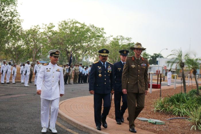 PB|Australia – Panglima TNI Marsekal TNI Hadi Tjahjanto, S.I.P. melaksanakan kunjungan kehormatan kepada Chief of Defence Forces Australia General Angus Campbell, bertempat di Markas Northern Command, Larrakeyah, Australia, Jumat (27/7/2018). Kunjungan kehormatan tersebut dilakukan sebelum pelaksanaan Australia-Indonesia High Level Committee (Ausindo HLC) ke-6 tahun 2018.
