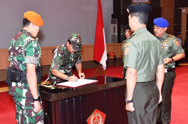 Hal tersebut dikatakan Panglima TNI Marsekal TNI Hadi Tjahjanto, S.I.P. saat memimpin Serah Terima Jabatan (Sertijab) Kababinkum TNI dari Mayjen TNI Markoni, S.H, M.H. kepada Brigjen TNI Joko Purnomo, S.H., M.H. di Aula Gatot Subroto, Mabes TNI, Cilangkap, Jakarta Timur, Rabu (2/5/2018).
