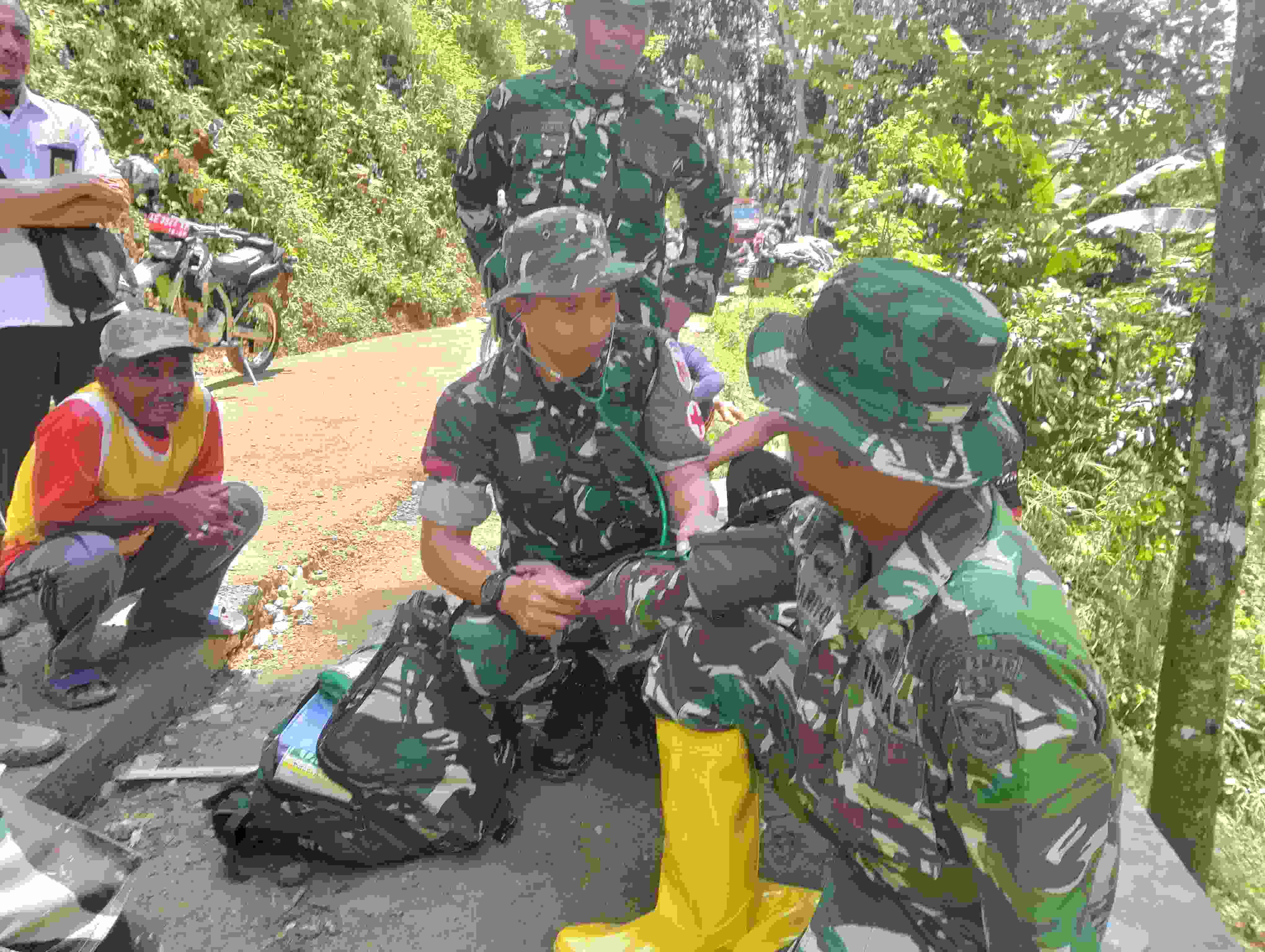Pacitan, – Tidak Hanya melayani Anggota TNI saja, Tim Kesehatan Lapangan (Keslap) Satgas TMMD 126 Kodim 0801/Pacitan juga berikan layanan kesehatan kepada warga Desa Petungsinarang, Kecamatan Bandar, Kabupaten Pacitan.