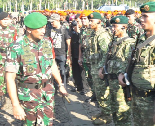 PB | Jakarta – TNI mengerahkan 10.150 personel untuk mengamankan jalannya pelaksanaan Konferensi Tingkat Tinggi “World Islamic Economic Forum” (KTT-WlEF) Ke-12 yang digelar di Jakarta Convention Center (JCC) Jakarta mulai 2-4 Agustus 2016.“Kami kerahkan sekitar 10.150 personel dalam pengamanan KTT WIEF. Belum lagi personel dari Polri,” kata Pangdam Jaya Mayjen TN Teddy Lhaksmana selaku Pangkoopspam KTT WIEF Ke-12 usai Apel Gelar Pasukan Komando Operasi Pengamanan VVIP KTT WIEF, di Silang Monas, Jakarta, Kamis.