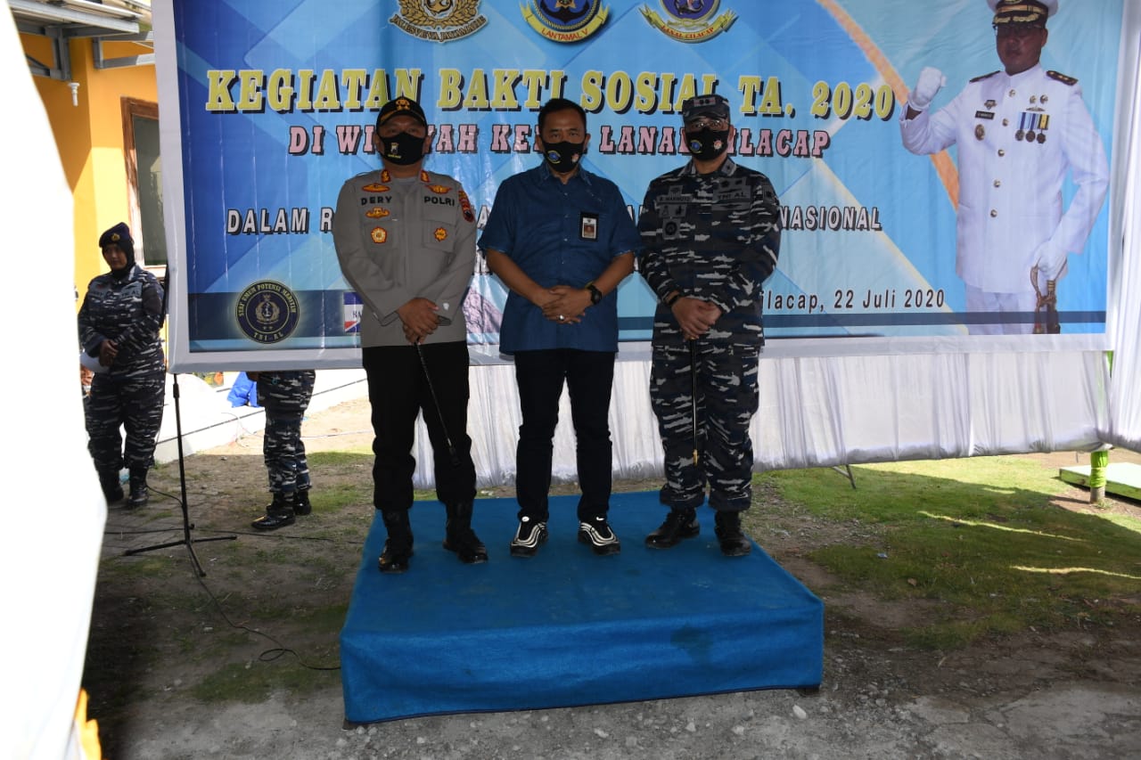 Cilacap – Bertempat di Desa Tritih Kulon Kecamatan Cilacap Utara, Kabupaten Cilacap Pangkalan TNI Angkatan Laut (Lanal) Cilacap menggelar Bhakti Sosial TA. 2020 Dalam Rangka Penanggulangan Bencana Nasional non Alam Penyebaran Covid-19. Rabu (22/07).