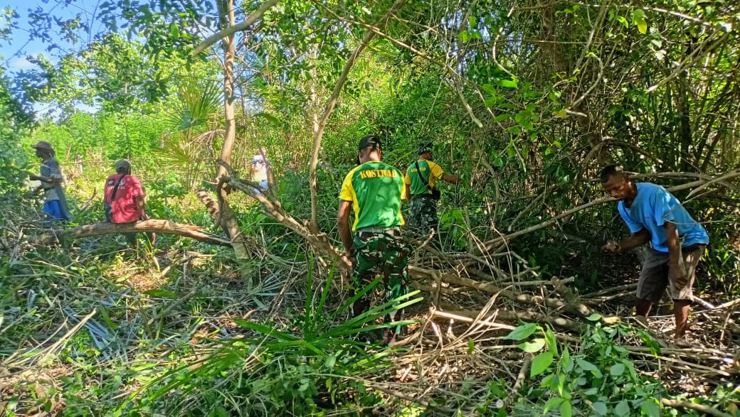 Karya bakti tersebut dilaksanakan secara gotong royong dengan melibatkan personel Pos Motamasin dan warga setempat. Pembukaan lahan dilakukan dengan membersihkan semak belukar dan menyiapkan tanah agar siap ditanami berbagai komoditas pertanian yang bernilai guna bagi kebutuhan masyarakat Dusun Metamauk.