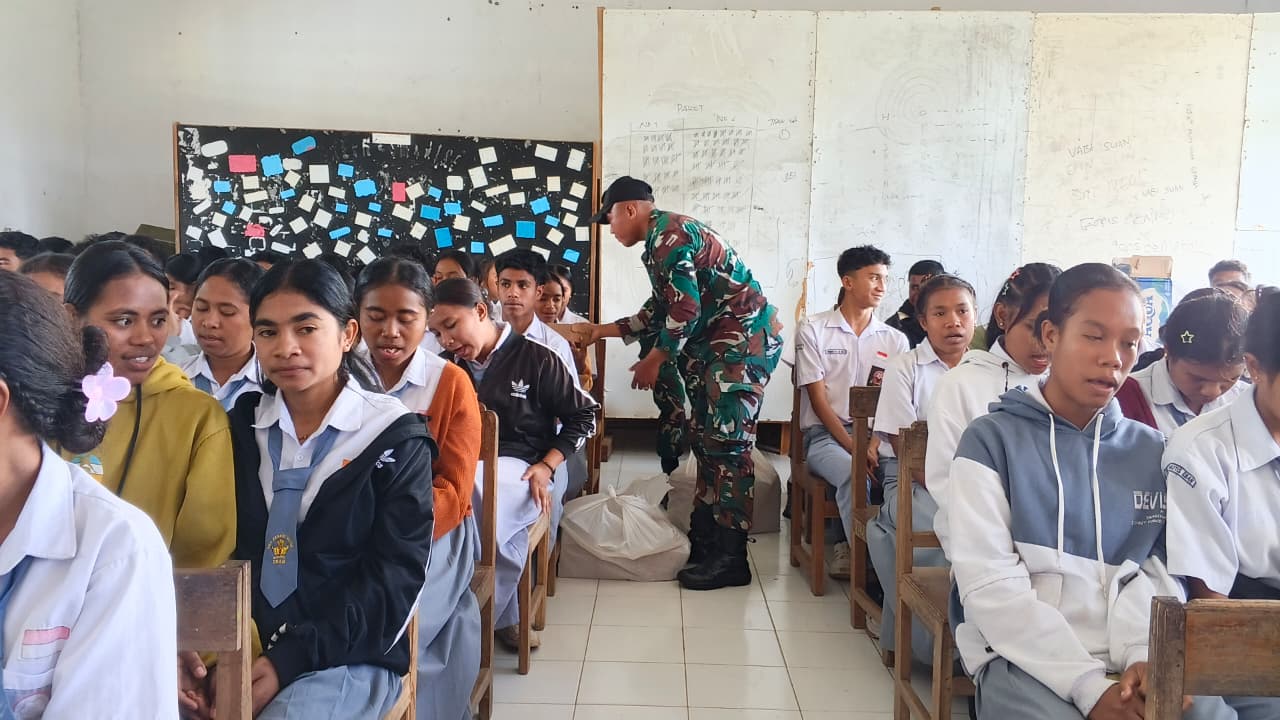 TTU – Dalam upaya meningkatkan ilmu dan pengetahuan, personel Makosatgas Pamtas RI-RDTL Sektor Barat Yonarhanud 2 Kostrad berikan penyuluhan pendidikan materi wawasan kebangsaan dan bela negara di SMAN Mutis, Kecamatan Miomaffo Barat, Kabupaten TTU, Rabu (04/03/2026).