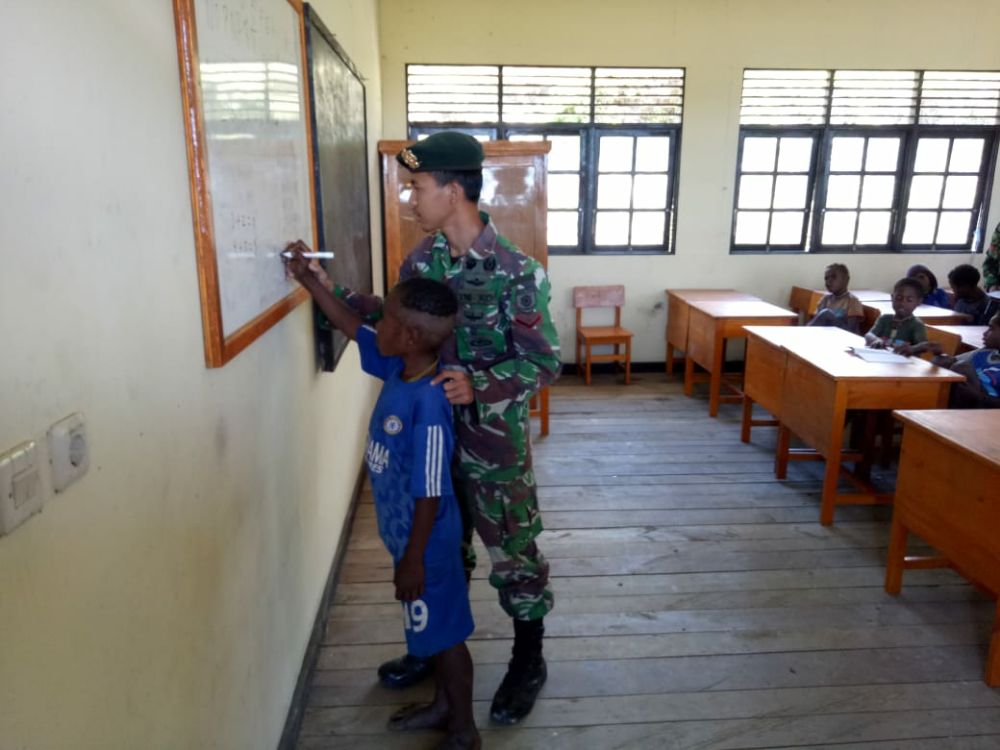 “Personel Satgas Yonif Mekanis Raider 412 Kostrad akan berupaya untuk menjadi guru pengganti agar bisa meneruskan kegiatan belajar yang selama ini terhenti akibat gangguan keamanan,” ungkap Lettu Inf Zulfahmi Khaidir Depari.