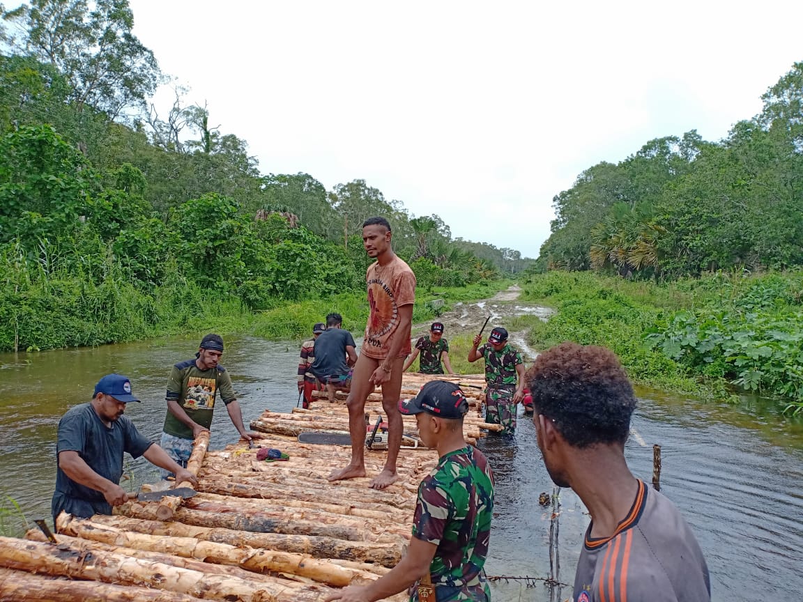 Kemanunggalan itu, terlihat ketika Satgas di bawah Komando Letkol Inf Andi, A. Wibowo tersebut, dengan kompak membuat jembatan darurat bersama masyarakat Kampung Tomerau, Kabupaten Merauke, Papua. Senin, 11 Februari 2019.