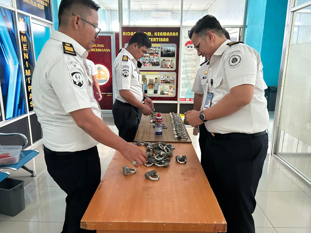 Pemeliharaan sarana keamanan ini merupakan langkah preventif yang dilakukan secara berkala guna memastikan seluruh fasilitas pengamanan dalam kondisi optimal dan berfungsi dengan baik. Kegiatan meliputi pengecekan kondisi pembatas gerak, pelaksanaan rolling atau rotasi pengamanan, serta perawatan dan penggantian gembok pada blok hunian.