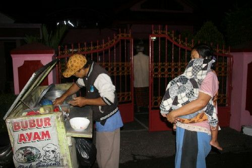 Sugeng Suroso sendiri, sudah sepuluh tahun ini sehari-hari berdagang bubur ayam keliling dengan menggunakan sepeda motor dengan penghasilan rata-rata Rp. 50.000,- per hari. “Saya cuma dagang bubur ayam keliling, berangkat jam 05.00 sampai jam 09.00 pagi. Rute jualan saya dari Dusun Karangpetir, Grecol, Karangmanyar sampai ke Asrama Batalyon 406/Ck di bojong dan balik lagi ke rumah,” terang Sugeng.