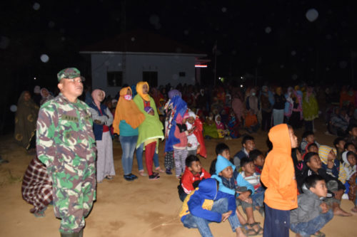 Banjarnegara – Ratusan warga masyarakat Desa Pasegeran Kecamatan Pandanarum memadati lapangan desa guna menyaksikan pemutaran film KB yang merupakan rangkaian dari kegiatan TNI Manunggal KB Kesehatan (TMKK) serta film pelaksanaan TMMD Reguler 102 Banjarnegara berlangsung. Minggu malam (5/7/18).