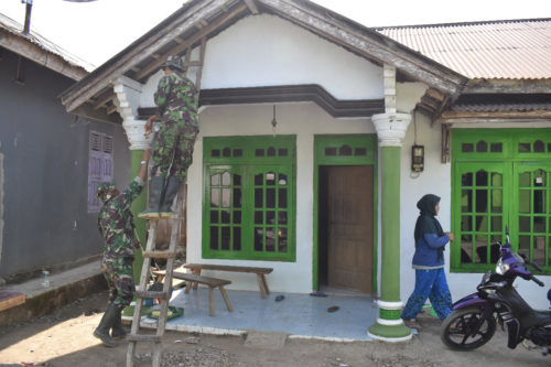 “Saya tidak meminta rumah saya di cat oleh bapak TNI yang tinggal disini. Hanya bisa berterima kasih sayanya Pak,” ucap Runtiyah.