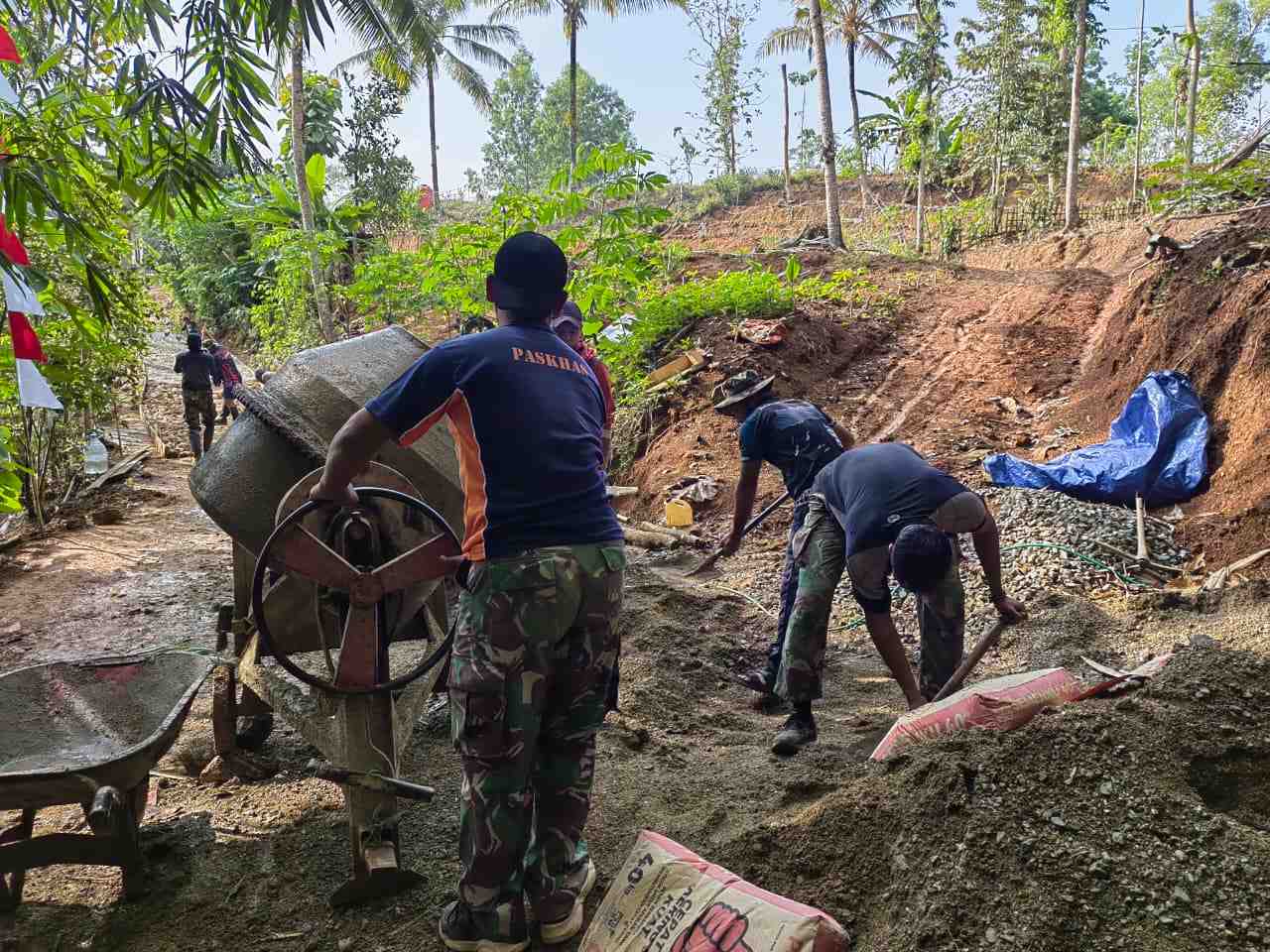 Pacitan – Program TNI Manunggal Membangun Desa (TMMD) ke 126 Tahun 2025 Kodim 0801/ Pacitan di Desa Petungsinarang, Kecamatan Bandar, Kabupaten Pacitan dengan sasaran fisik pengecoran jalan rabat terus dikebut, Senin (27/10/2025).
