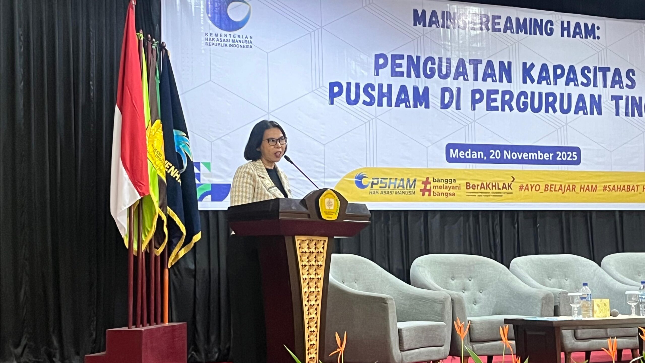 Medan – KemenHAM Sumut dan Universitas Sari Mutiara Indonesia resmi menandatangani MoU untuk penguatan ekosistem pendidikan HAM melalui pembentukan Pusat Studi HAM (PUSHAM). Penandatanganan dilakukan oleh Kakanwil KemenHAM Sumut, Dr. Flora Nainggolan, dan Dekan Fakultas Hukum USM Indonesia, Dr. Adv. Sherhan Munthe, disaksikan para dekan, kaprodi, dosen, dan enam narasumber ahli dari berbagai perguruan tinggi. (20/11/2025)