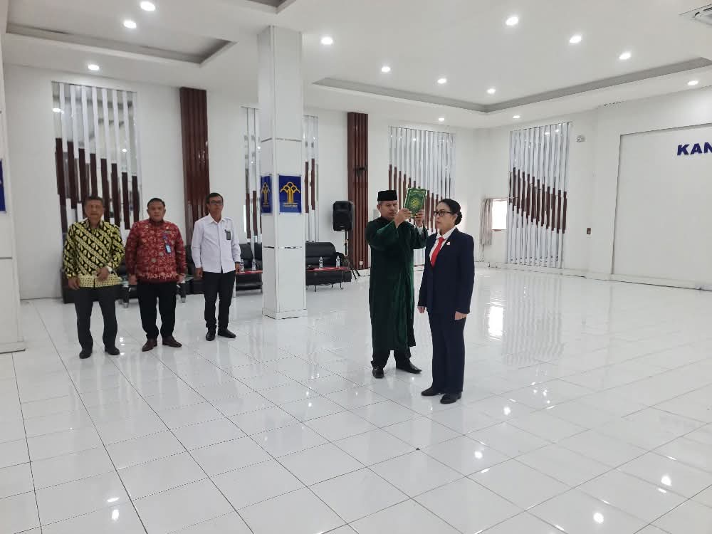 Anggota MKNW Sumut yang baru disumpah adalah Nur Handayani, S.H., M.H., yang diangkat berdasarkan Keputusan Menteri Hukum RI Nomor AHU-88.AH.02.09 Tahun 2025, tertanggal 27 Oktober 2025. Beliau resmi menjabat sebagai Anggota MKNW Sumatera Utara untuk periode Tahun 2025 sampai dengan Tahun 2028. Saksi yang turut hadir dalam prosesi virtual ini adalah Hantor Situmorang, S.Pd., M.Si., Sekretaris Direktorat Jenderal, dan Sugito, S.T., Direktur Teknologi Informasi Direktorat Jenderal.