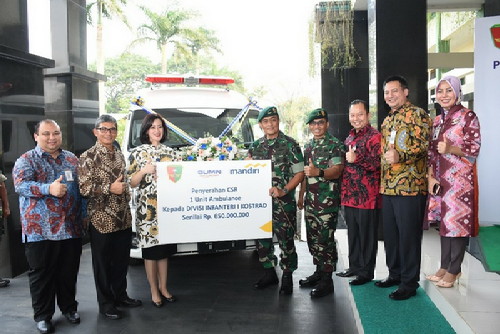 Cilodong | Bertempat di Markas Divisi Infanteri 1 Kostrad, Cilodong Depok. Sebagai bentuk simpati atas terjalinnya kerjasama dengan Divisi Infanteri 1 Kostrad, PT. Bank Mandiri (persero) Tbk. memberikan kemudahan akses pelayanan kesehatan dengan menyerahkan bantuan CSR satu unit mobil Ambulance kepada Divisi Infanteri 1 Kostrad. (31/7).